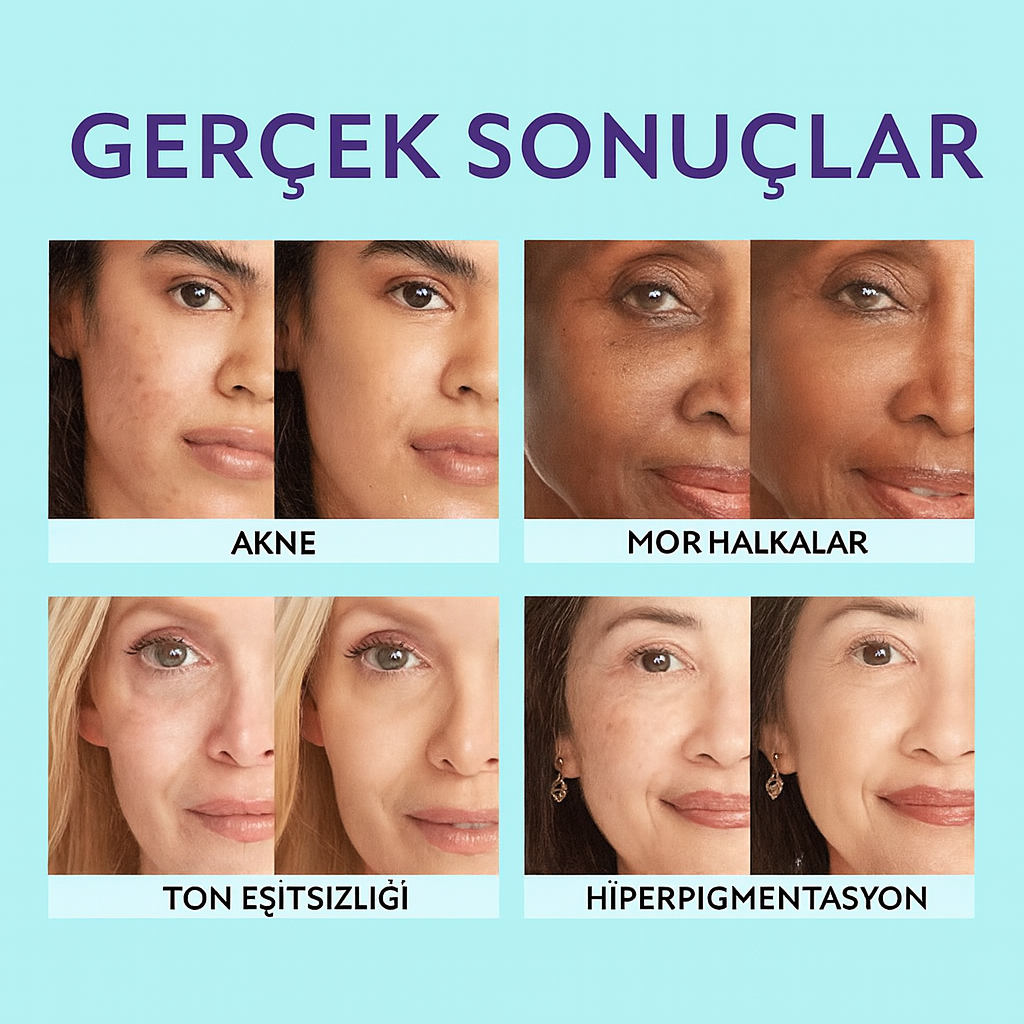 - ✔ Gözenek, leke ve kızarıklık görünümünü hafifletir